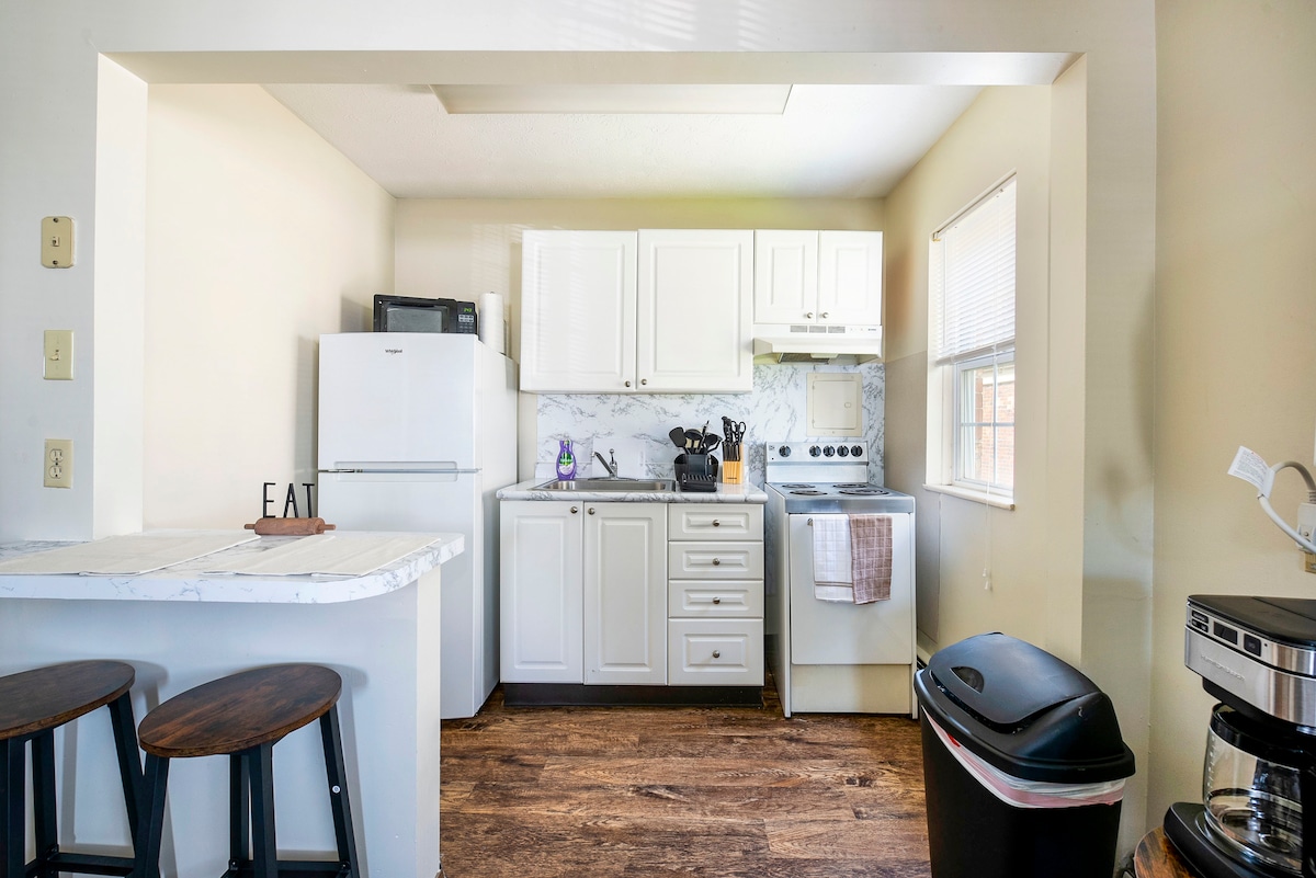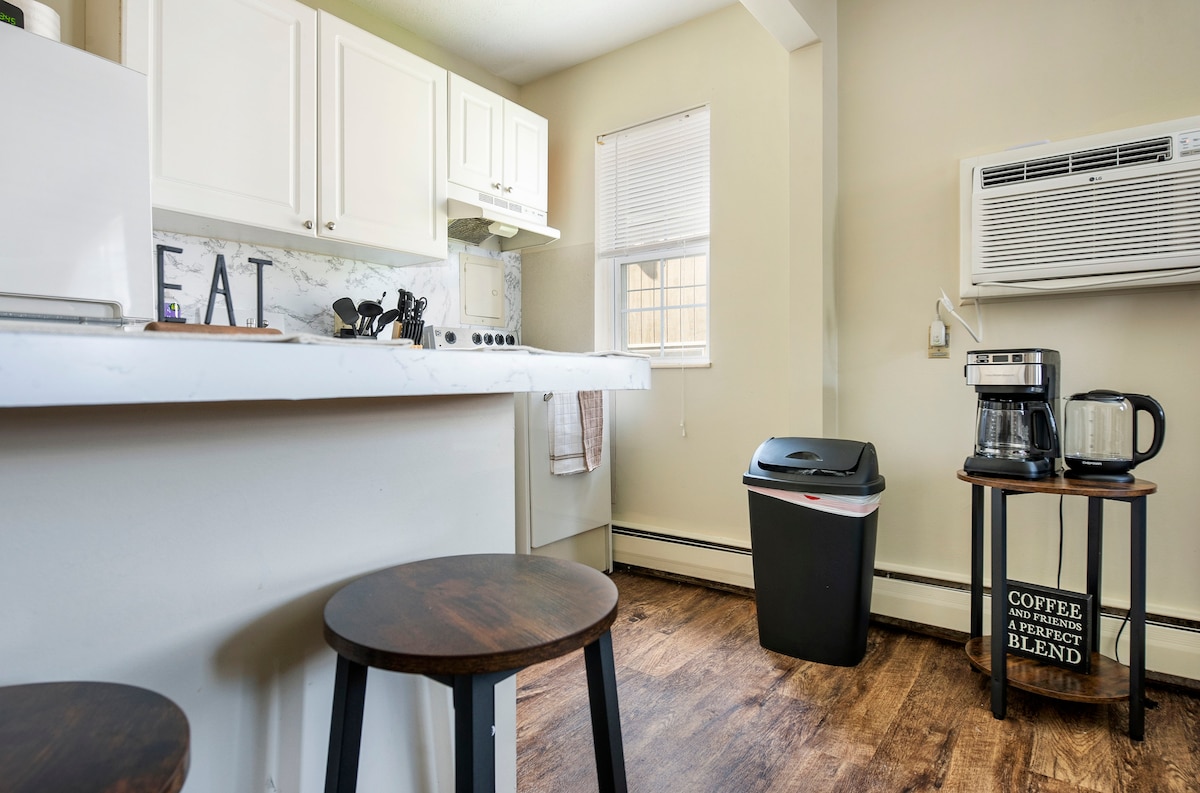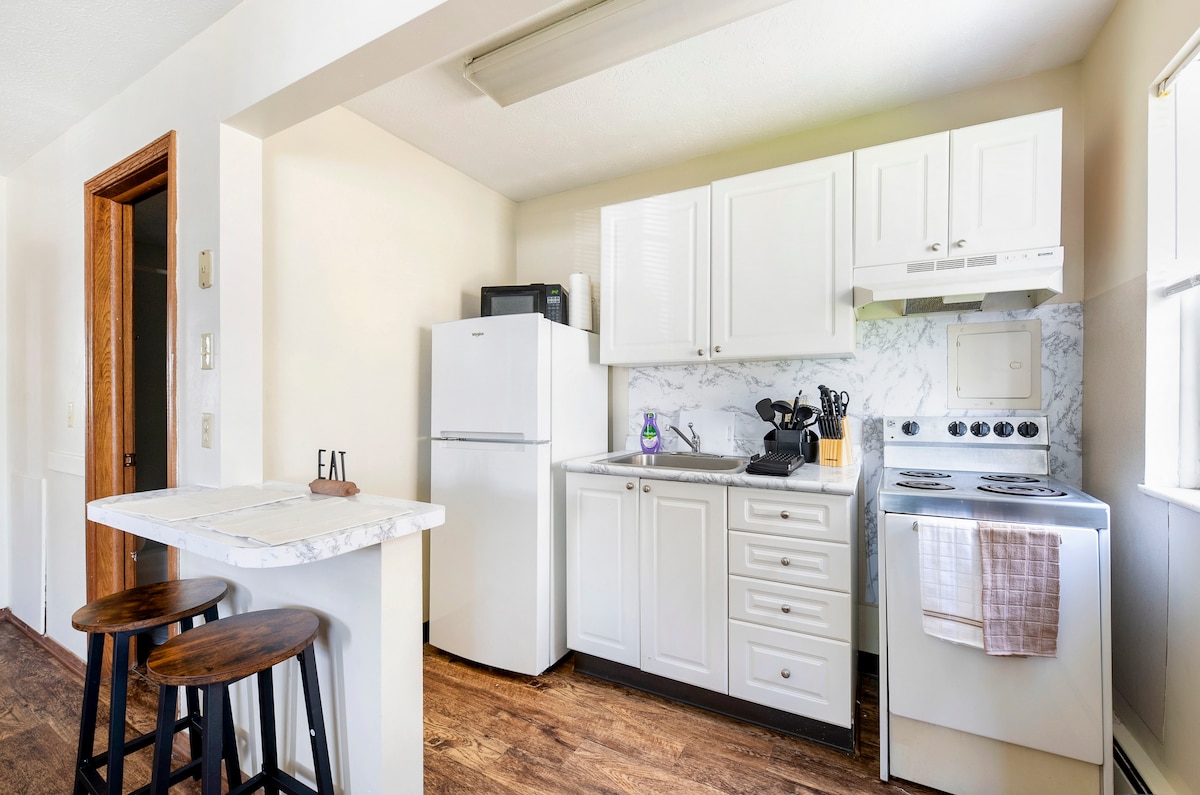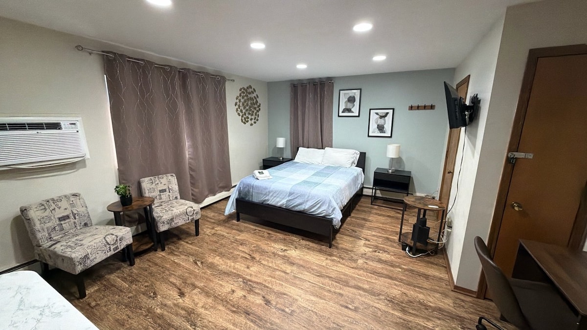 This stylish studio has everything you need for a comfortable stay with a bright, open layout, a Smart TV, a kitchen, a desk with fast WiFi, a sparkling bathroom with all the essentials provided.