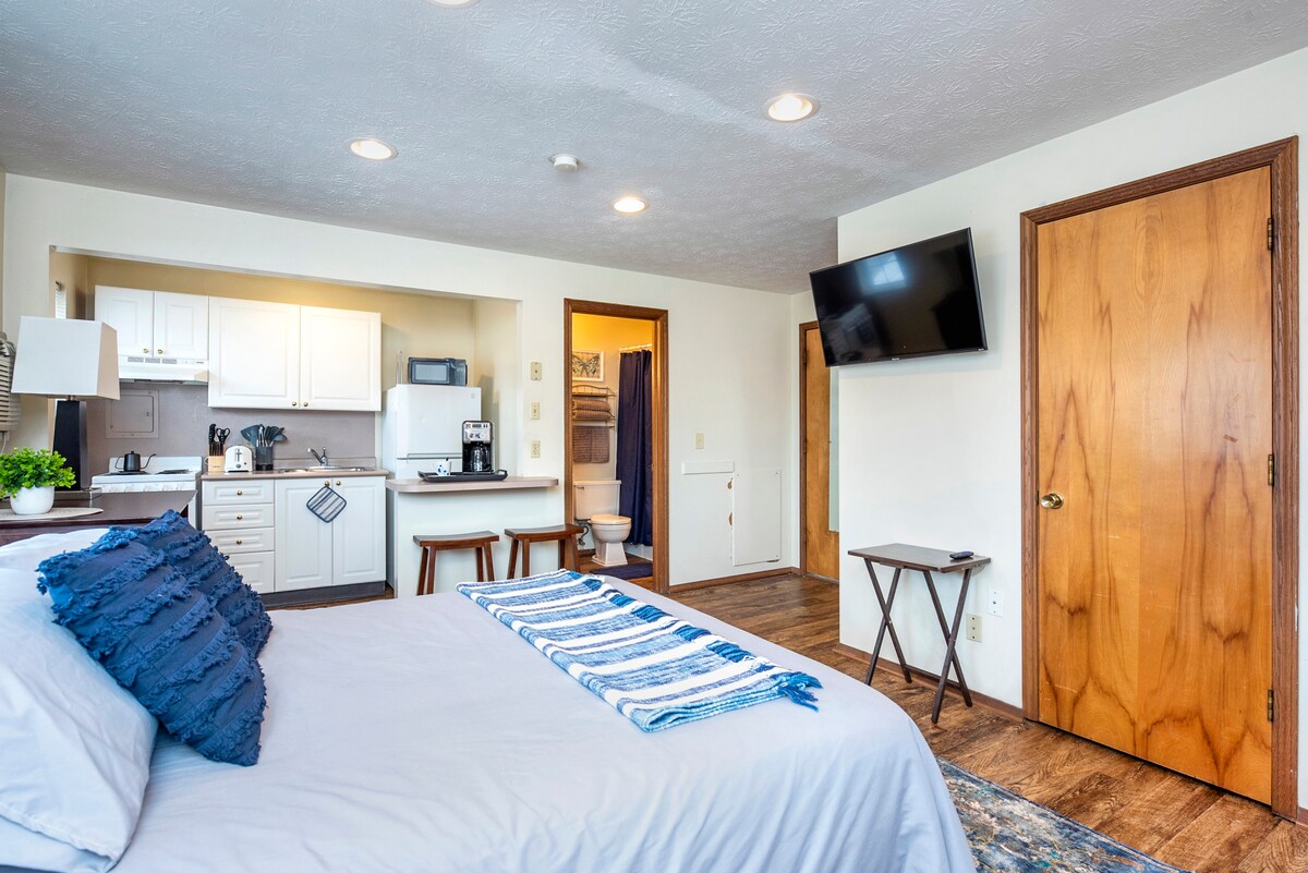 The spaceOur studio is in the heart of OSU student living so you'll likely get some noise from nearby events especially on nights and weekends. The space is comfortable, convenient, and functional - everything you need to feel at home for a night, or for a month. The kitchen is stocked with cooking essentials to prepare your own meals and coffee & tea for your morning routine. Pots, pans, spatulas, knives, glasses, electric stove, microwave, toaster, and more provided. High-speed internet, smart TV (NO CABLE but can login with your TV provider to watch some channels).