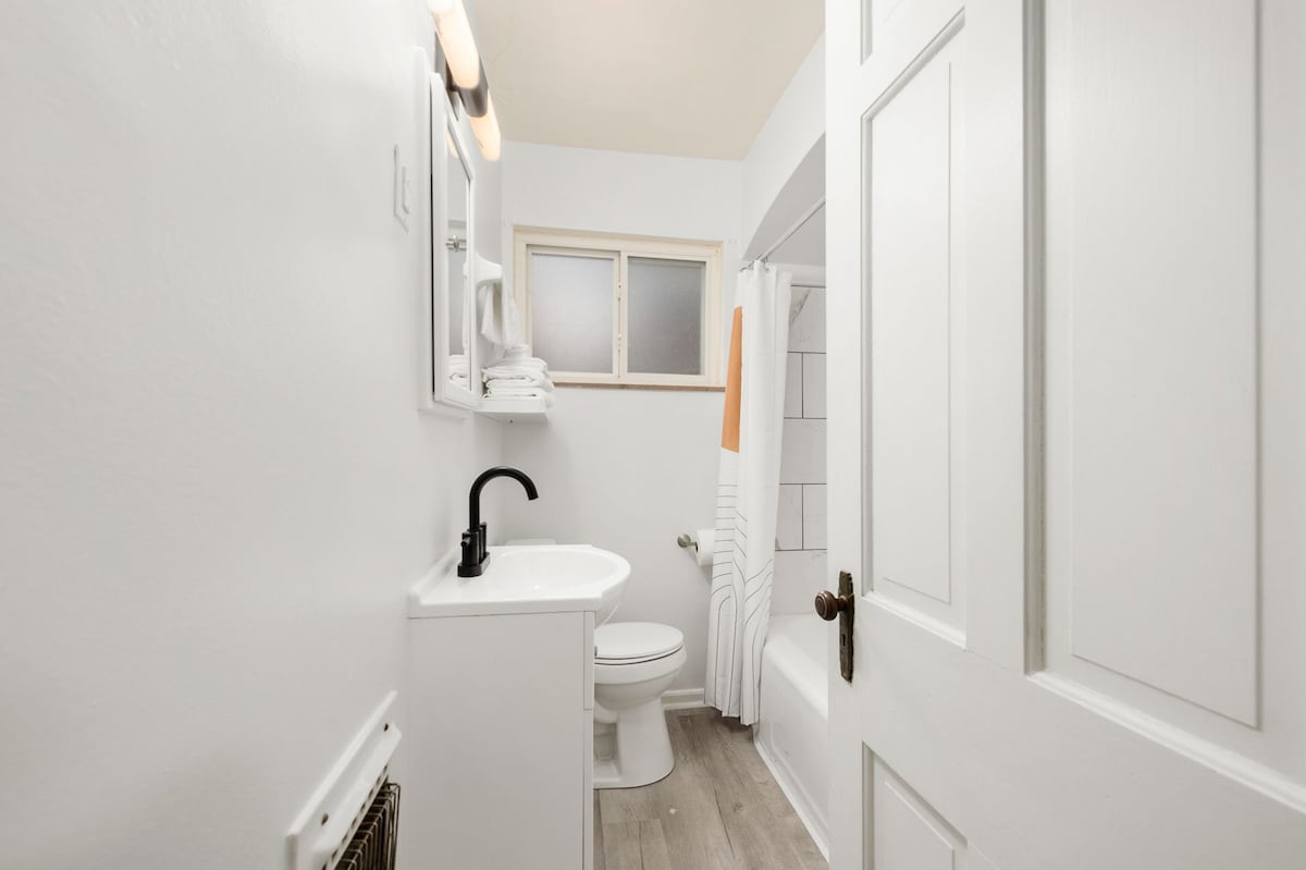 Off the bedroom is the sparkling bathroom filled with soft fluffy towels, quality amenities, a relaxing full-size bath and an overhead shower. The bathroom may be considered small to those who require more space.