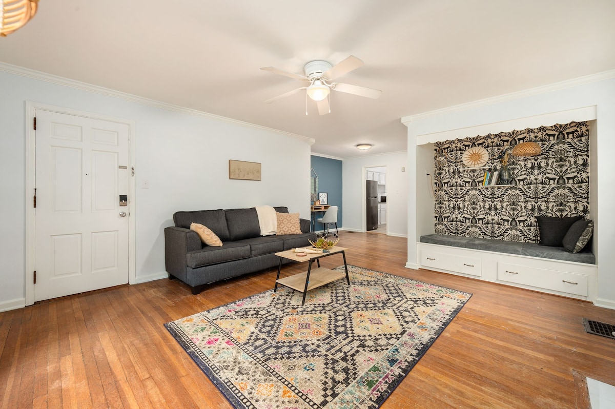 Neighborhood overviewThe quaint neighborhood of Eastlawn sits right on the edge of Bexley with it’s tree-lined streets, beautiful architecture and small-town charm, is known for its historic walkable Main Street that welcomes visitors to many dining options, art venues, and unique shopping destinations. Visit the historic Drexel Theatre, Rubino's Pizzeria and Graeter's Ice Cream Parlor, find a stunning array of dining choices to cater to refined palates or try some Turkish delights at Cafe Istanbul, Moshi Sushi Bar, Giuseppe's Ritrovo and Rusty Bucket. Just a 5-minute walk from the apartment and you will find yourself along the bustling main street. Go for a morning walk to Starbucks, grab a quick lunch at Jimmy Johns or head into Downtown Columbus, a short 10-minute drive away. Nature lovers will adore the Botanic Gardens (5-min drive) that feature exceptional plant collections, indoor and outdoor gardens, seasonal art and nature-based exhibitions, and a dynamic array of events for visitors of all ages. Students and professionals can walk or bike to Capital University which is an easy 15-minute stroll away or simply use the sunny apartment as a base to explore everything Columbus has to offer with its great central location and walkable neighborhood.
